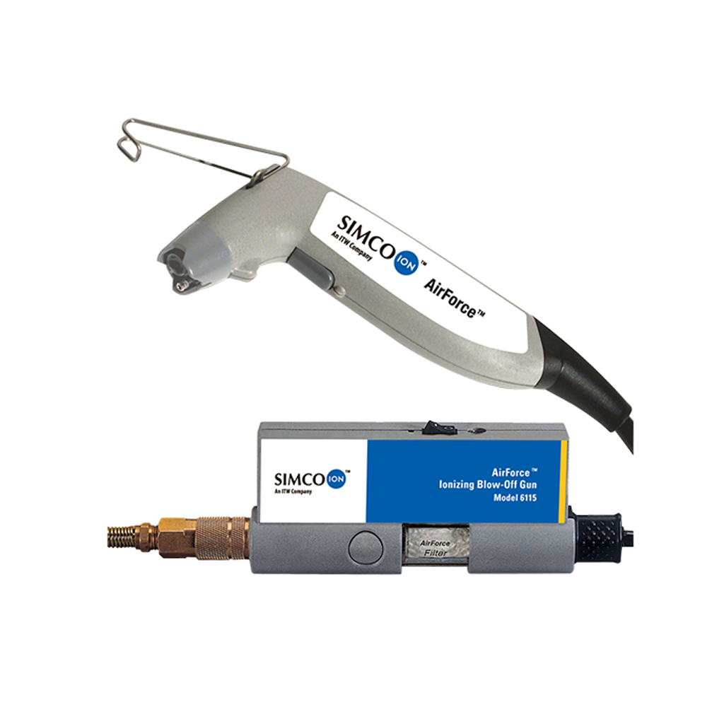 Simco-Ion AirForce6115 离子风枪是以使用者为本的设计,轻枪身和幼气喉只有 3 / 8"直径。方便移动,令操作更灵活。AirForce6115 离子风枪的枪头与控制台没有高压线连接,令操作员感觉更安全。枪身有轻触开关和 LED 显示,符合人体工学设计,减轻疲劳感或手腕使用过度的问题。AirForce6115 离子风枪吹力强,能有效地清除尘粒,适用在除污洁净制程, 更符合 ISO14644 1 Class 4 洁净要求。利用 Simco-Ion IsoStat 稳态直流放电技术,能有效地输出离子和控制平衡电压,令消散时间少于 1 秒。